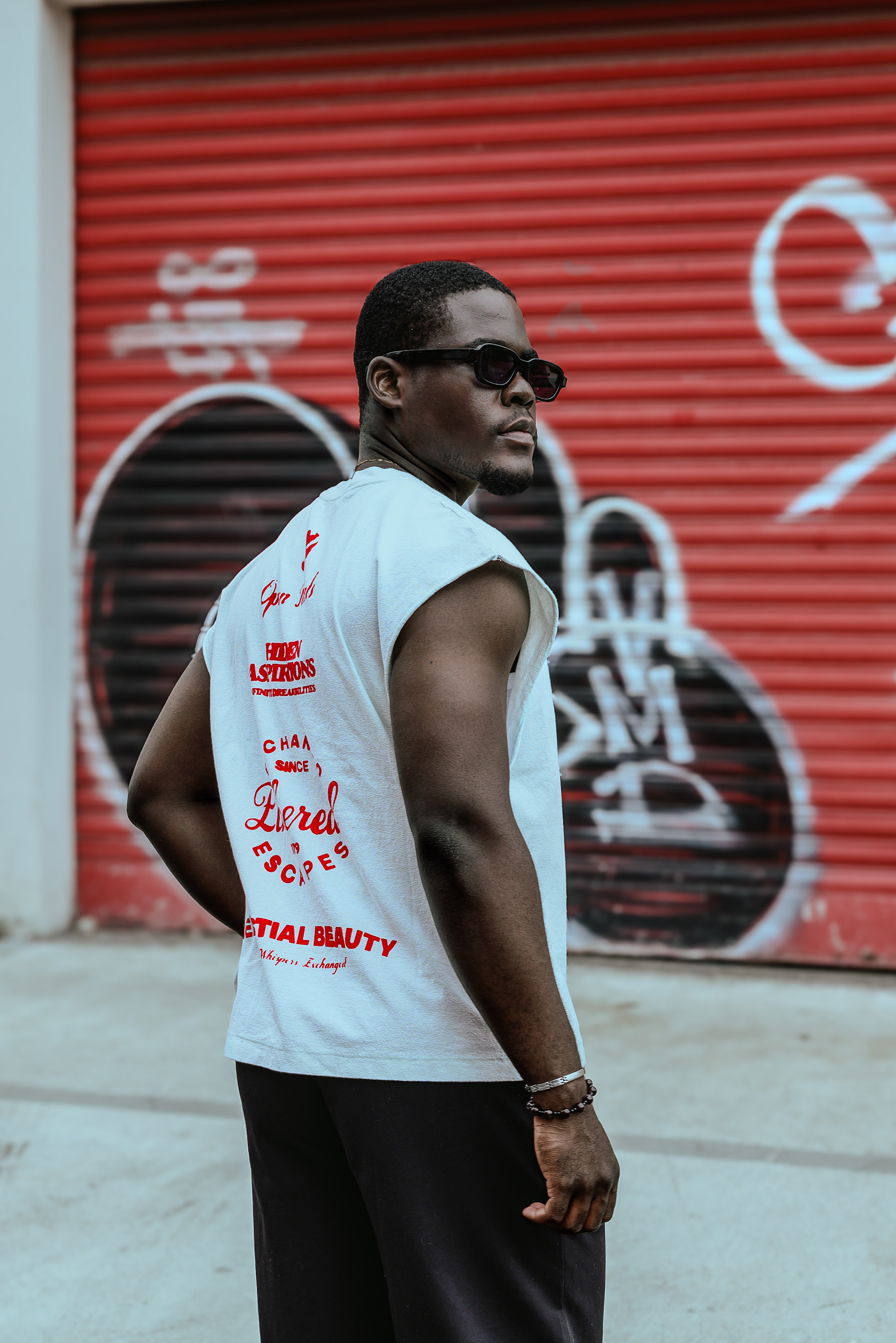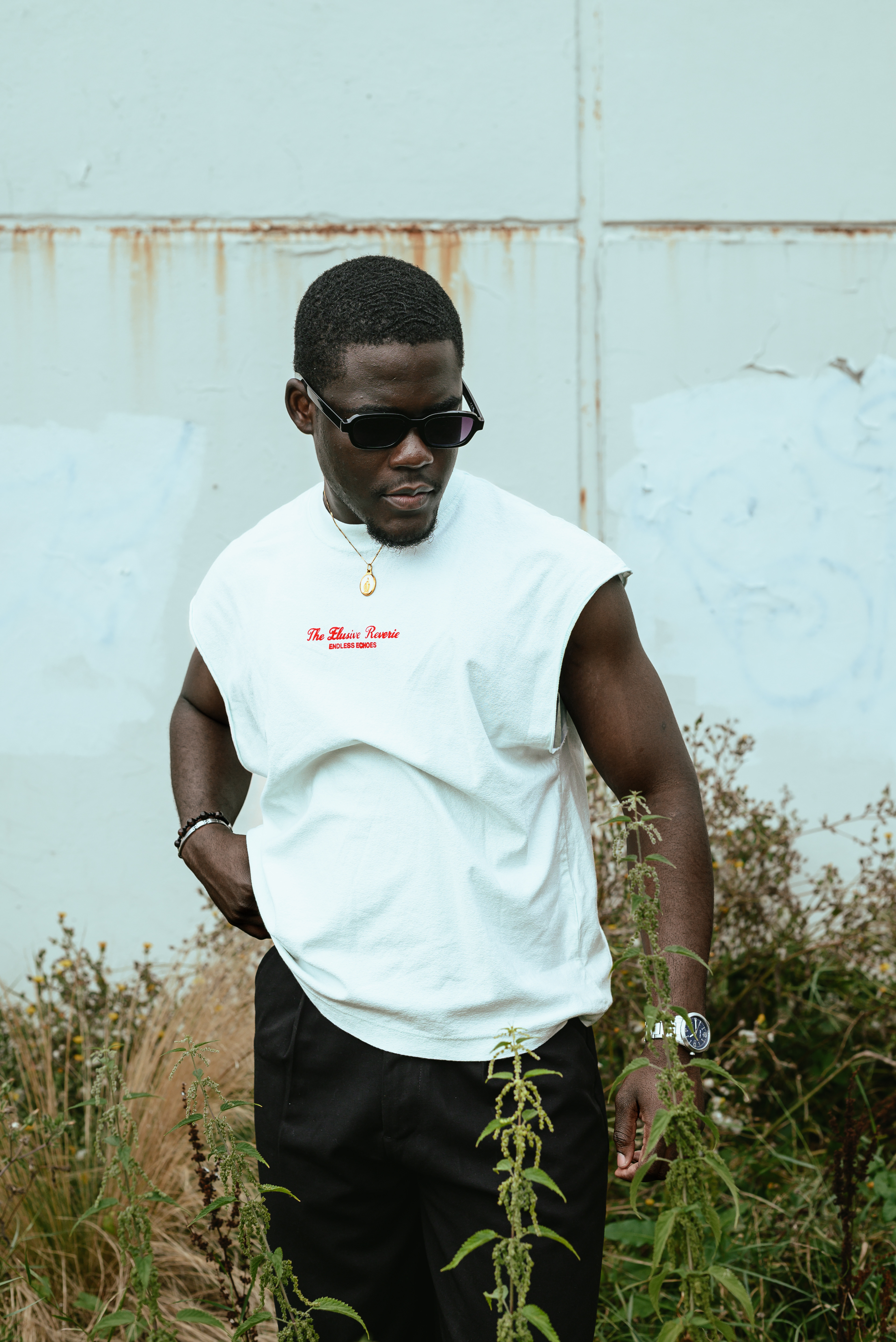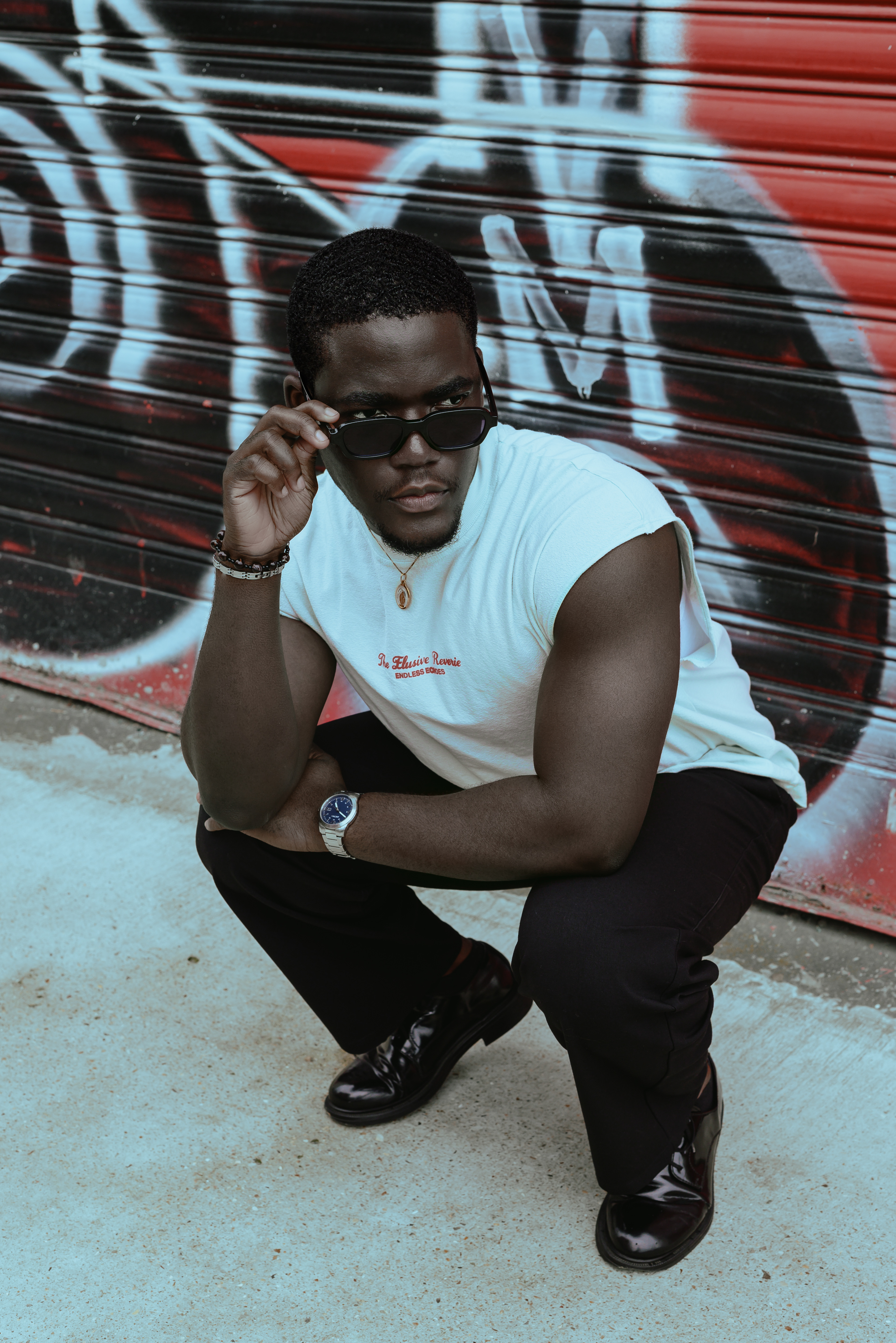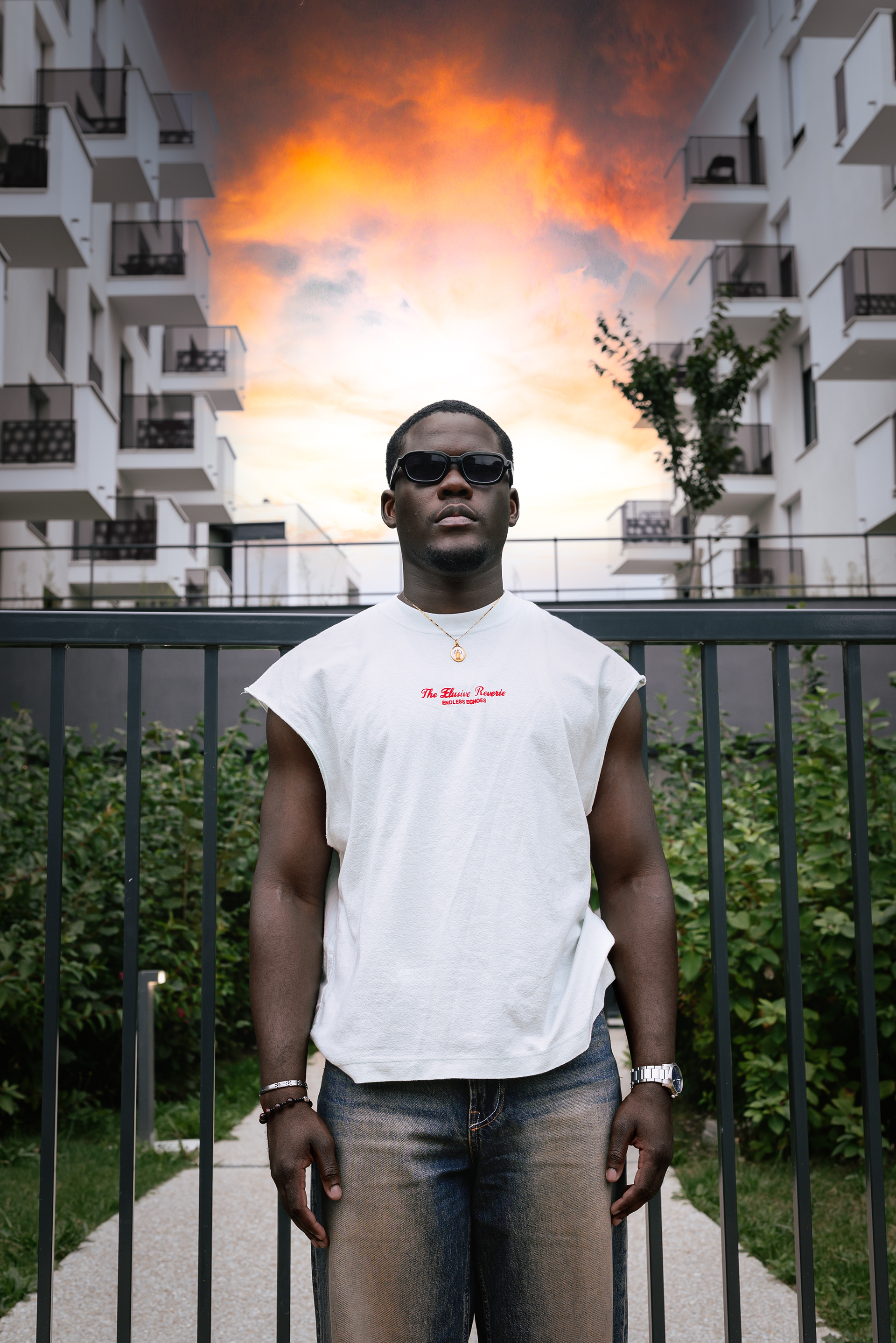 Pour la première partie du shooting, je me suis laissée porter par le contraste. Le lieu, la tenue, le charisme du modèle… tout m’a naturellement ramenée à une vibe “Men in Black”, mais revisitée.