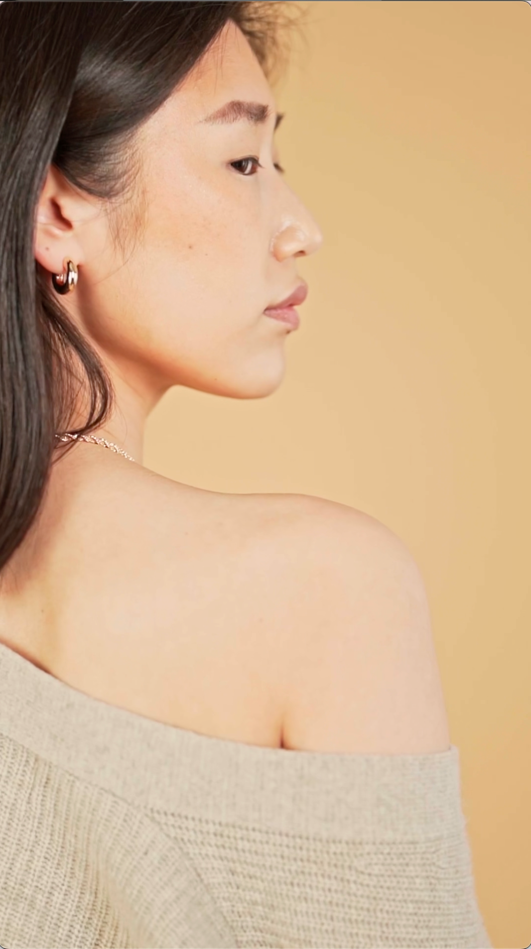 LE décor est minimaliste pour laisser respirer l’image, MAIS SURTOUT pour diriger l’attention sur la relation entre lA modèle et les bijoux.