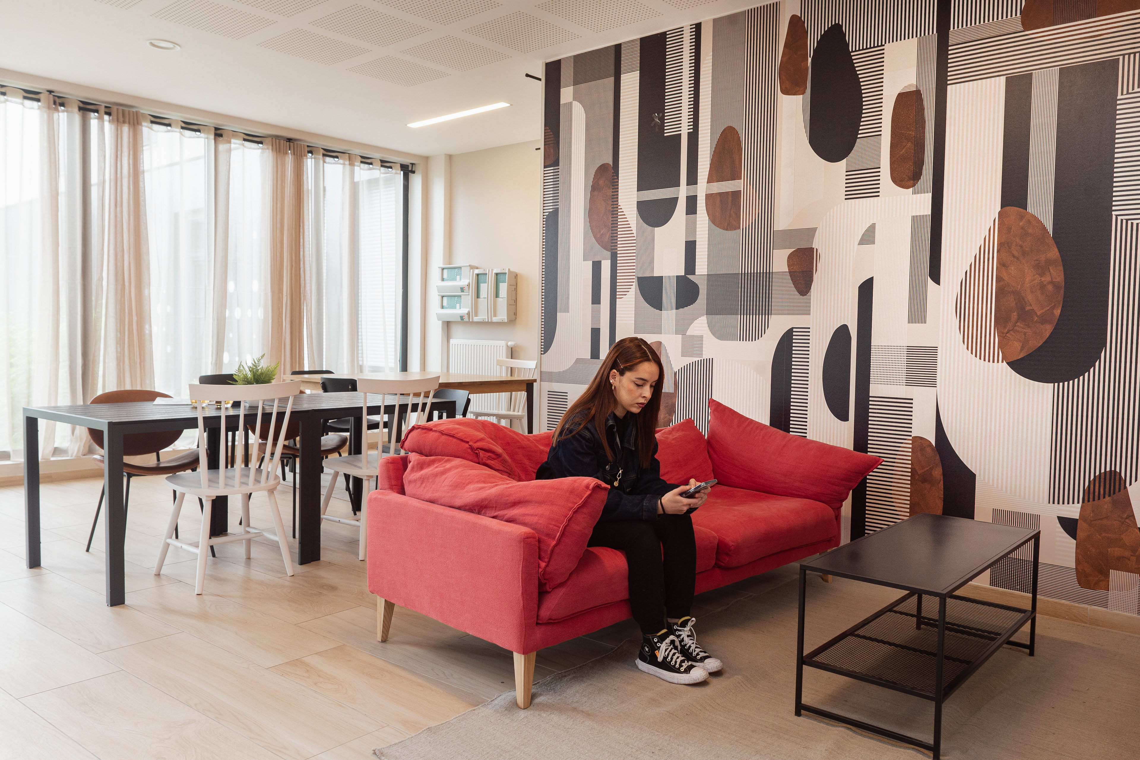 L’objectif était double : apprendre à photographier des espaces intérieurs de manière professionnelle et expérimenter la mise en scène de personnes dans ces lieux.